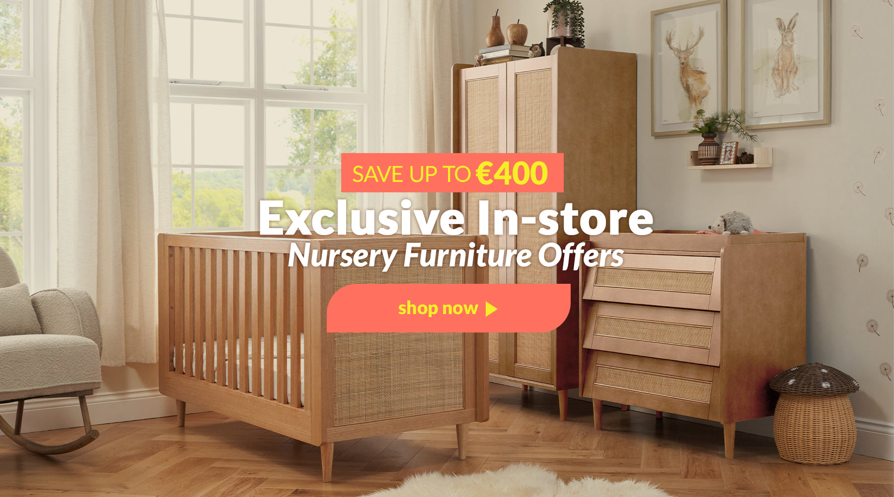 Did you know Ireland's top rated Baby & Nursery store is located in Bray! Pop in, get inspired with our beautiful nursery room sets, test drive your pushchair. Plus, free car seat fitting.