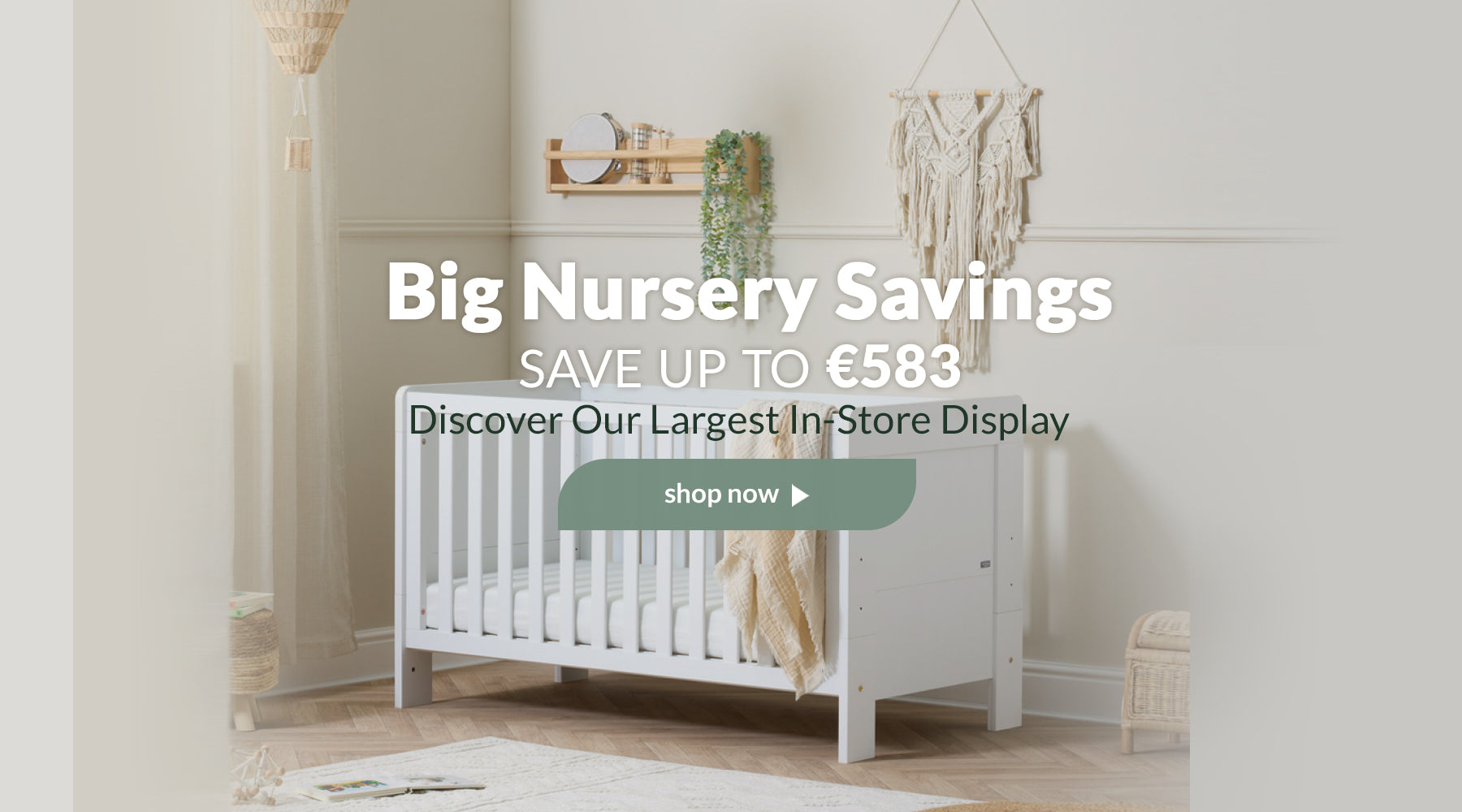 Did you know Ireland's top rated Baby & Nursery store is located in Bray! Pop in, get inspired with our beautiful nursery room sets, test drive your pushchair. Plus, free car seat fitting.