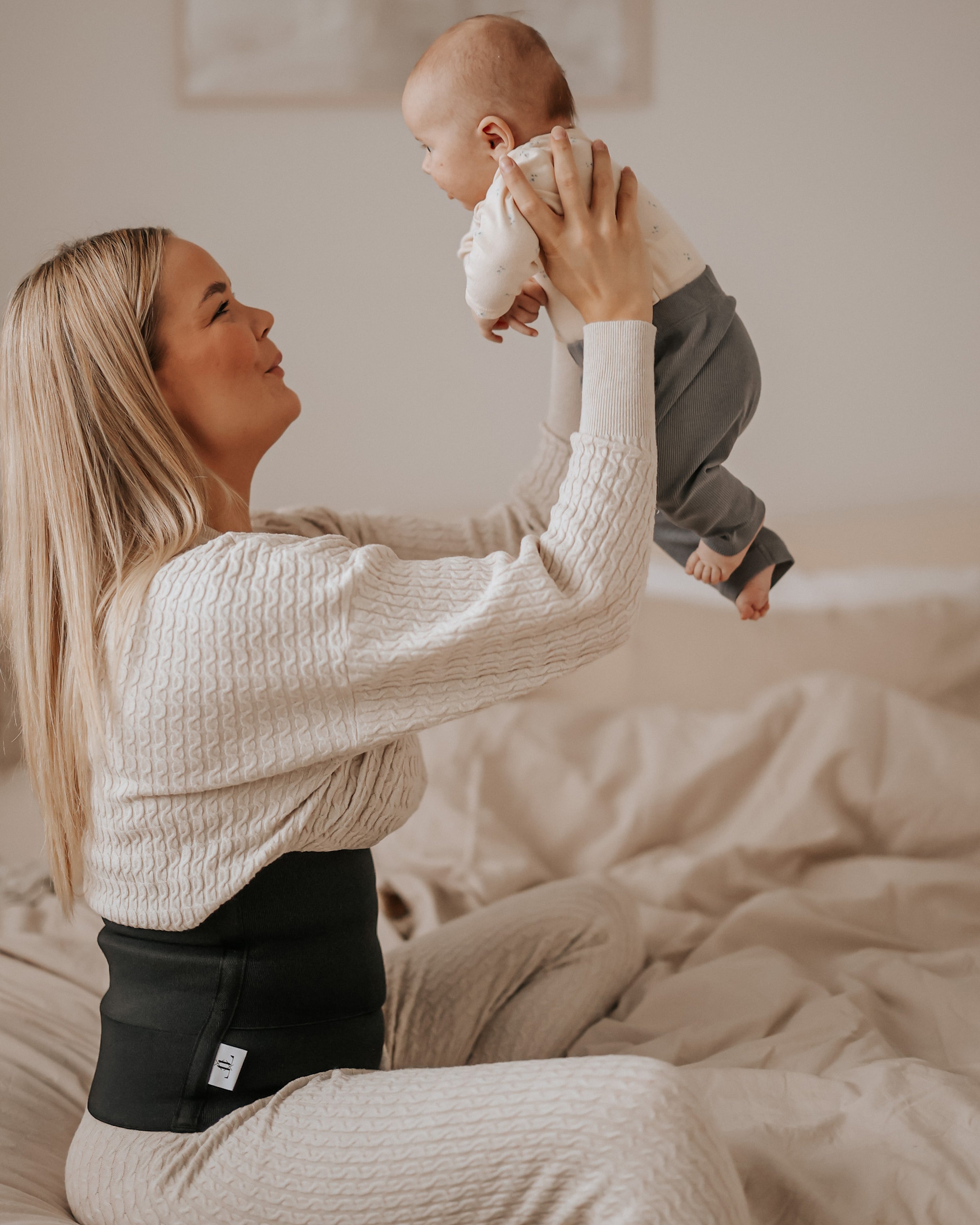 “Many women find, that wearing a belly band postpartum, provides additional support to the abdominal and back muscles just when they are at their weakest. The band can promote better posture, reduce back pain, and stabilise the pelvis. The idea is to give you that extra support and confidence, and to encourage you to stay more active without pain. It’s important to remember though, that while the band gives you the support, it should not be used as a treatment for any condition. In the end, you will only recover when you allow your muscles to start doing the work.“