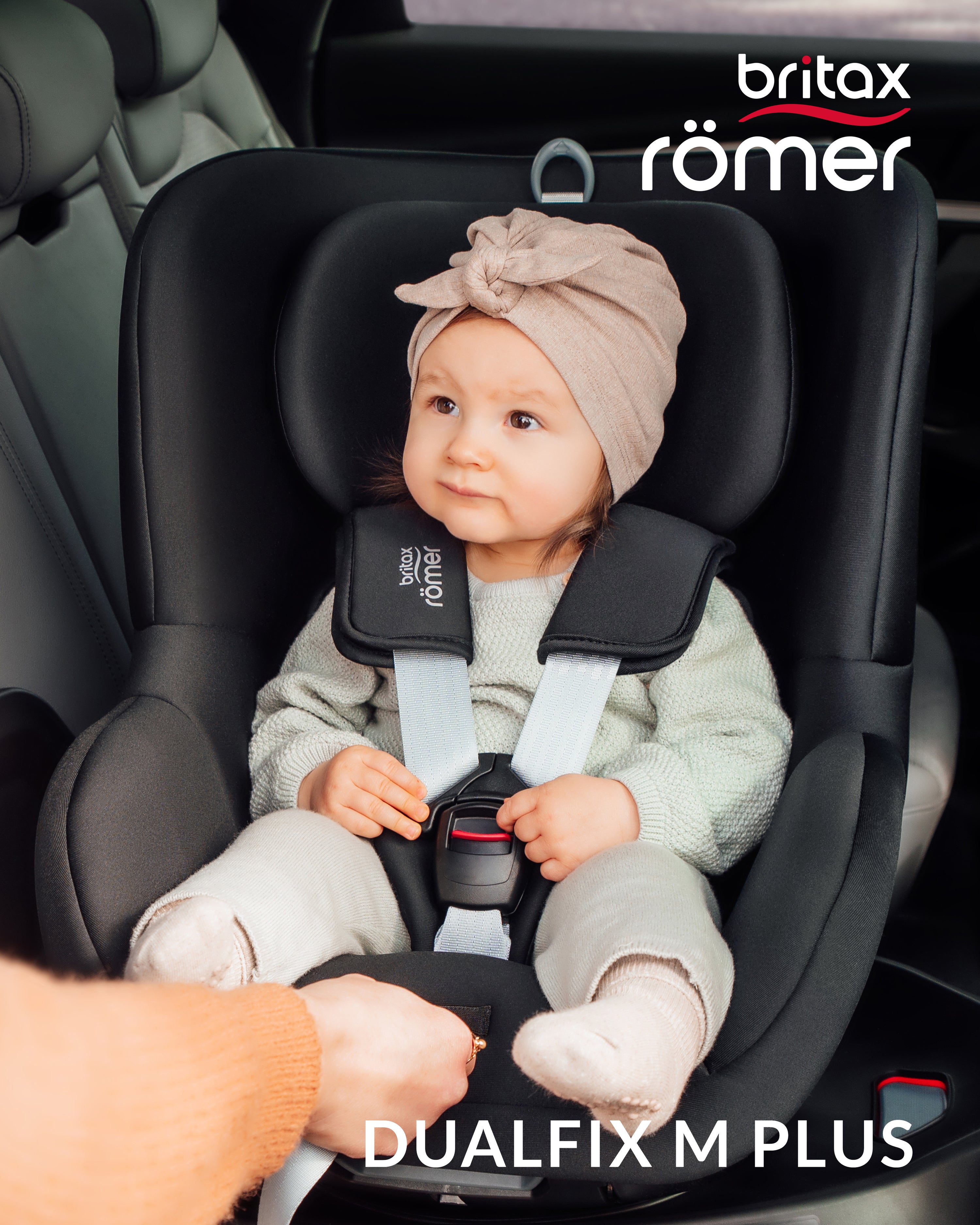 Suitable for children from around 3 months to 4 years (61-105 cm tall), the Britax Römer DUALFIX PRO M is the next step in your child's journey. Offering flexible safety, it features 360° rotation for effortless rearward and forward-facing positioning. Integrated SICT technology ensures protection in side collisions, while 12 recline positions and a V-shaped headrest provide support and comfort as your child grows. Its rotation mechanism allows for easy adjustment without disturbing your little one.
