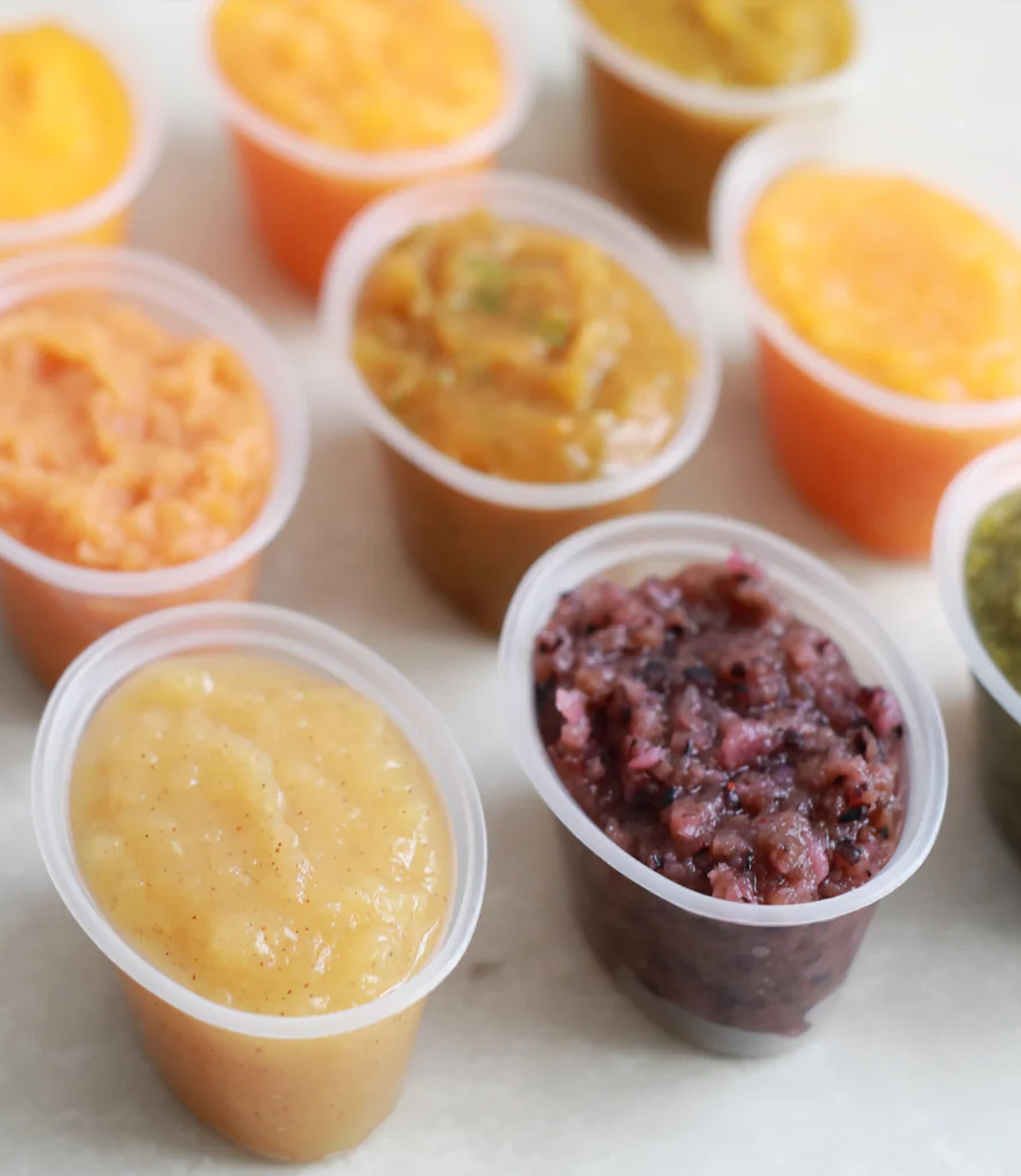 interest in food. The process starts with introducing simple, purèed foods such as fruits and vegetables.