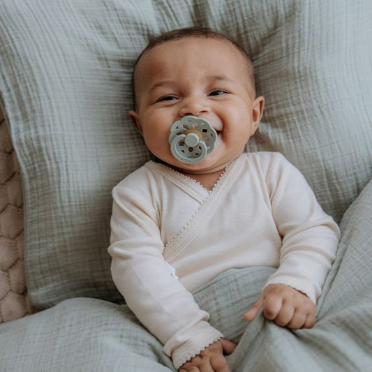 De Lux Round Silicon Soother 2pk Onesize - Ivory/Sage - BPA Free Dummy Pacifier