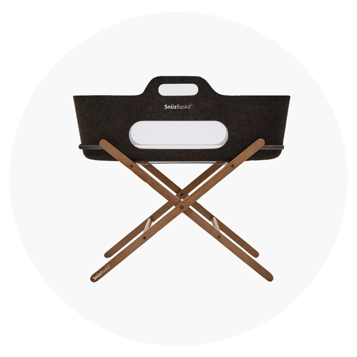 SnuzBaskit Moses Basket & Stand - Graphite Moses Basket & Walnut Stand