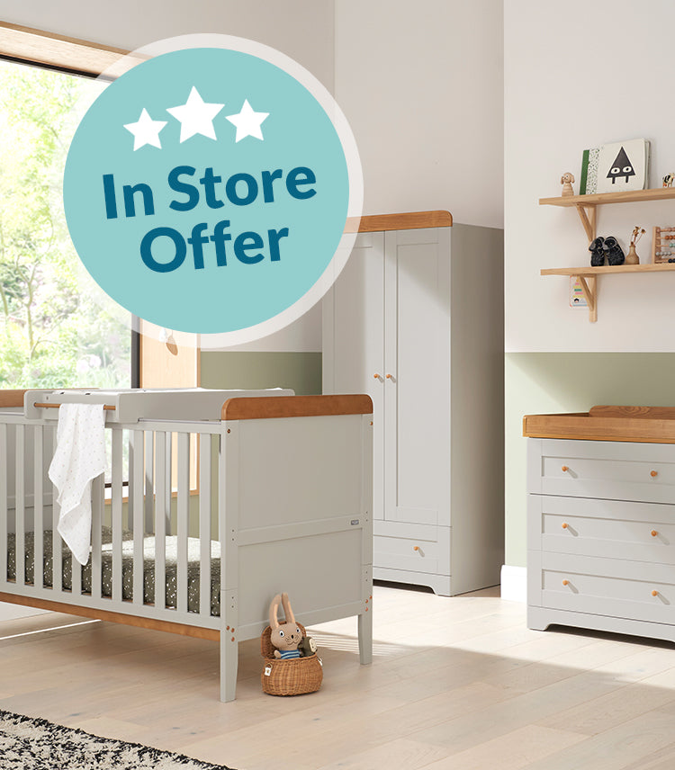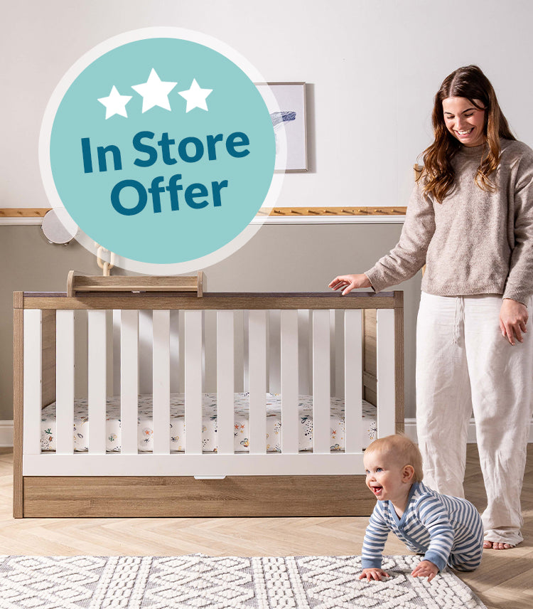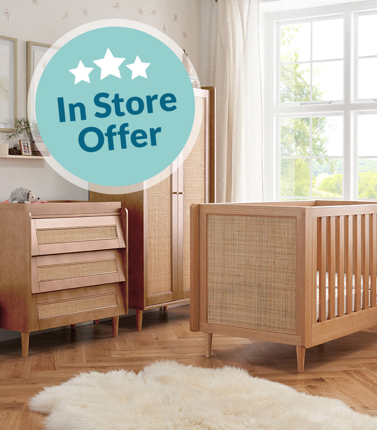 Exclusive furniture offers available in store only — see, feel and choose the perfect nursery setup.