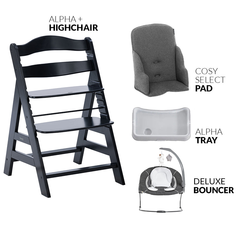 The Hauck Alpha+ Highchair Complete Bundle offers a complete solution for your growing child, ensuring comfort, safety, and versatility from birth through toddlerhood—and beyond.