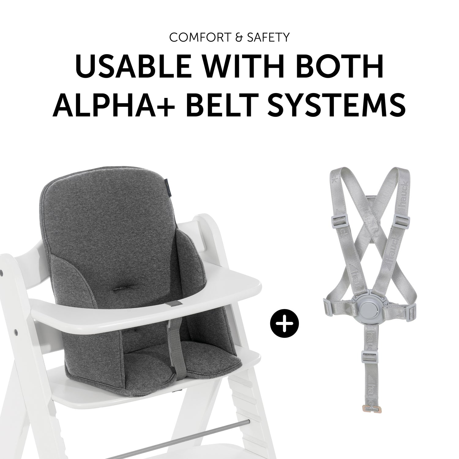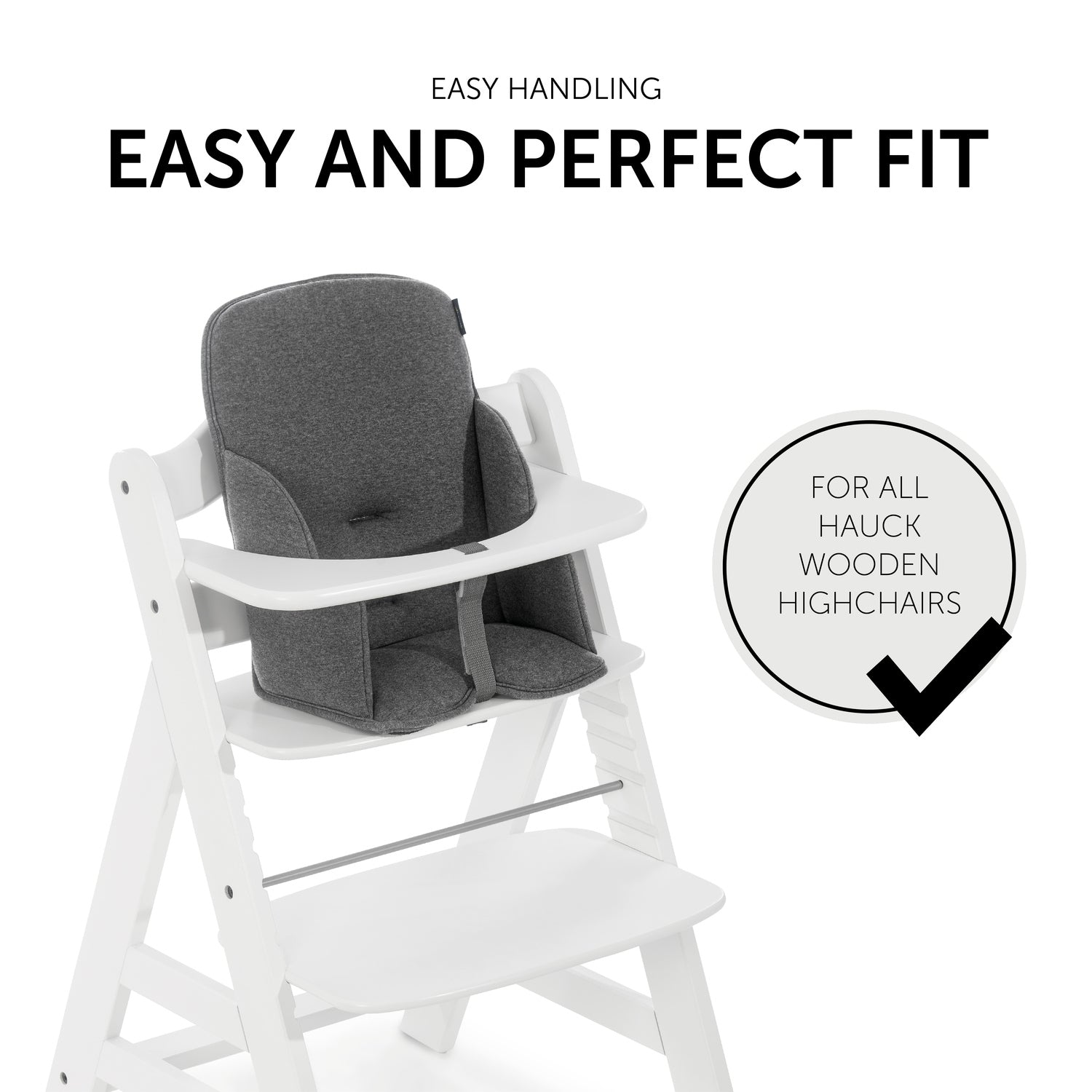 The Alpha Cosy Select is particularly useful during your toddler’s first months in the Hauck wooden highchair. The practical seat reducer comes with an extra high back and reinforced sides that protect your child’s head, while also offering stability and comfort.