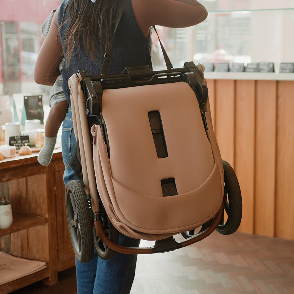 A multi-height UPF50+ sun hood provides shade and space as your child grows, while the 10kg supersized storage basket ensures you have room for all your essentials. When your journey ends, Cove folds down easily with one hand—even with the seat attached—for hassle-free storage and transportation.