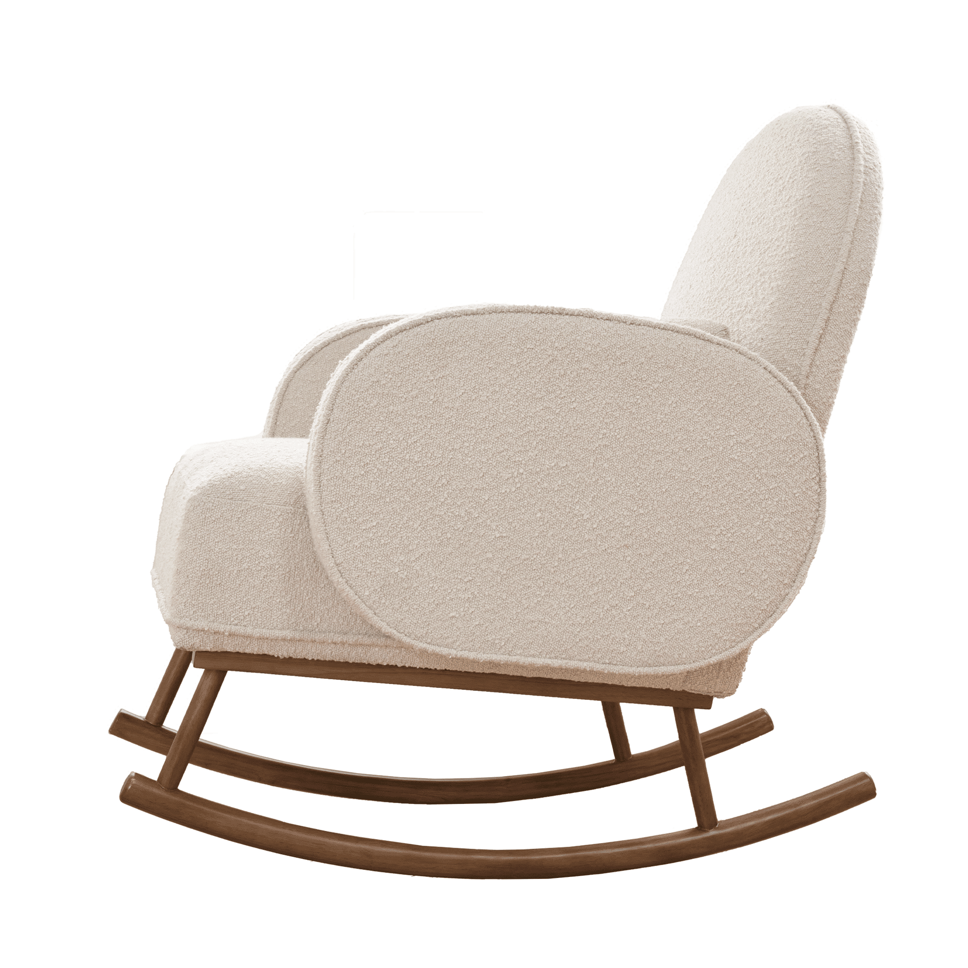 Immerse yourself in unparalleled comfort with the Micah rocking chair. Carefully crafted from soft boucle fabric, its curved edges and ergonomic design promise optimal back and arm support.