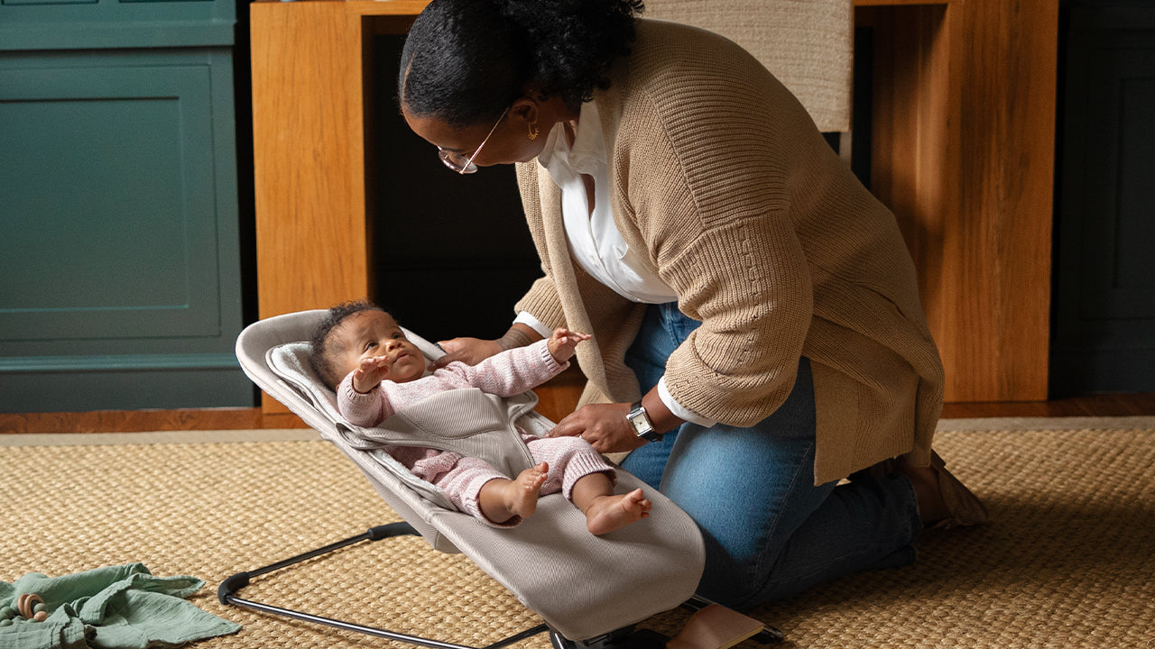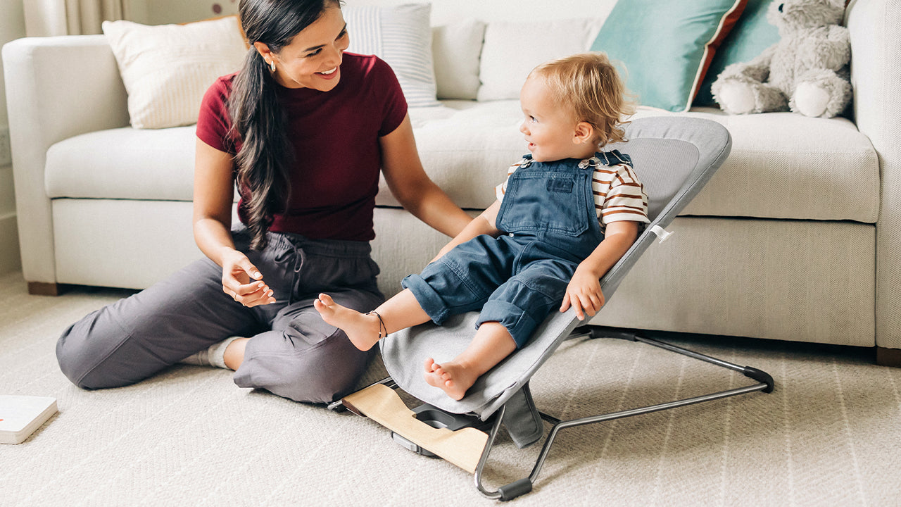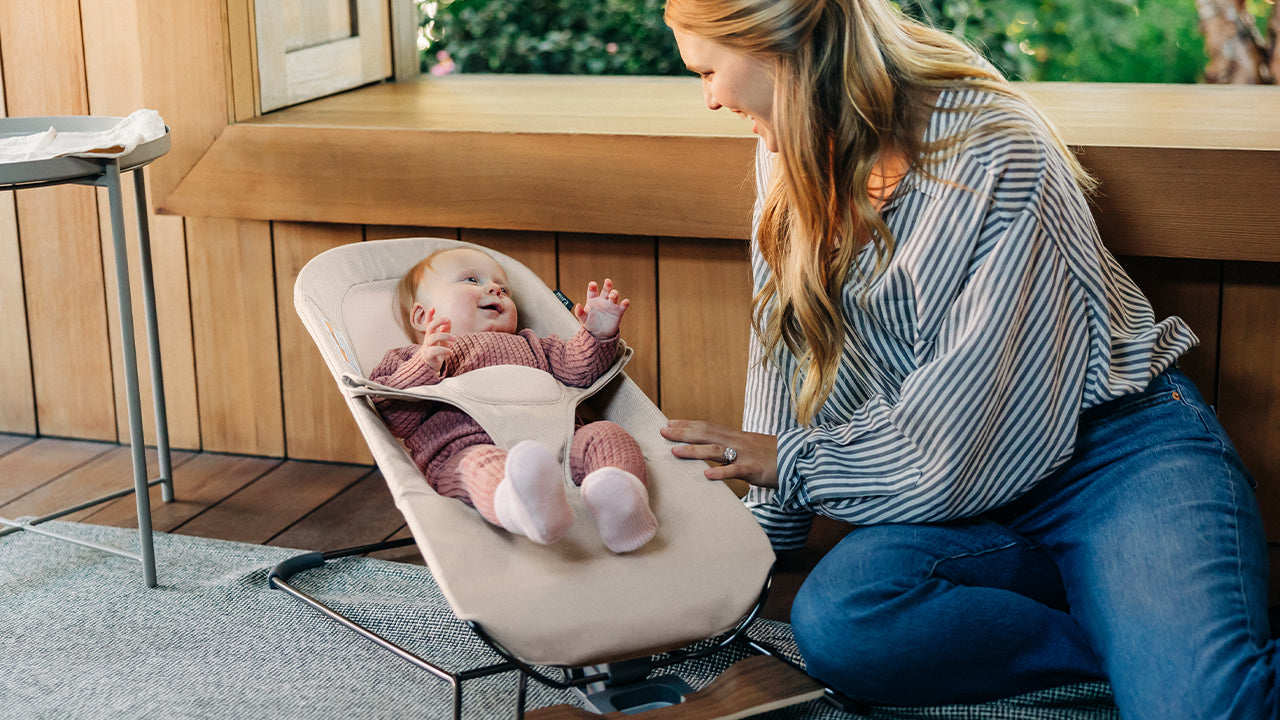 A cosy place to play or lay, the Mira was designed to soothe and comfort baby while keeping them close. Following their natural movement, the 2-in-1 bouncer and seat gently rocks to their rhythm from newborn to toddler.
