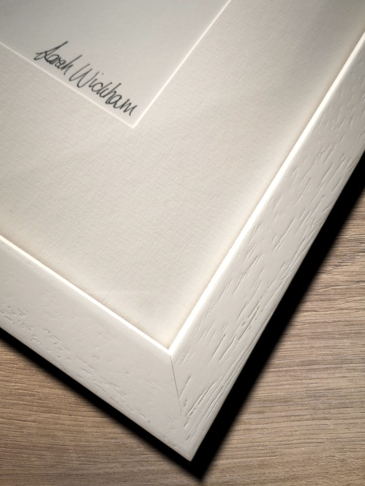 Printed on museum quality textured fine art paper. This paper is acid and lignin-free and certified ageing-resistant.