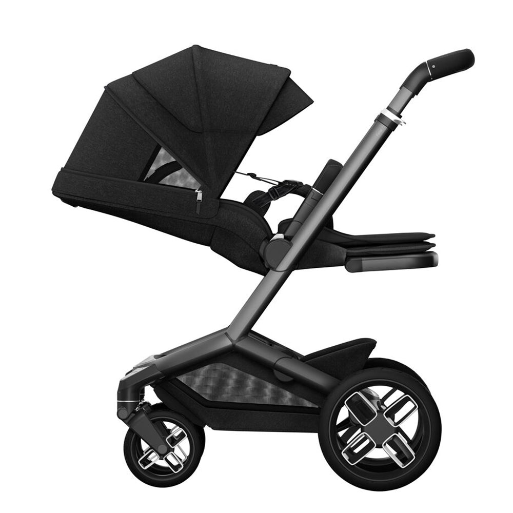 As well as the Fame pushchair and carrycot, the 9 Piece Premium Bundle also includes a Rain cover, 2-in-1 Footmuff, Cup holder, Phone holder, and Car seat adapters.