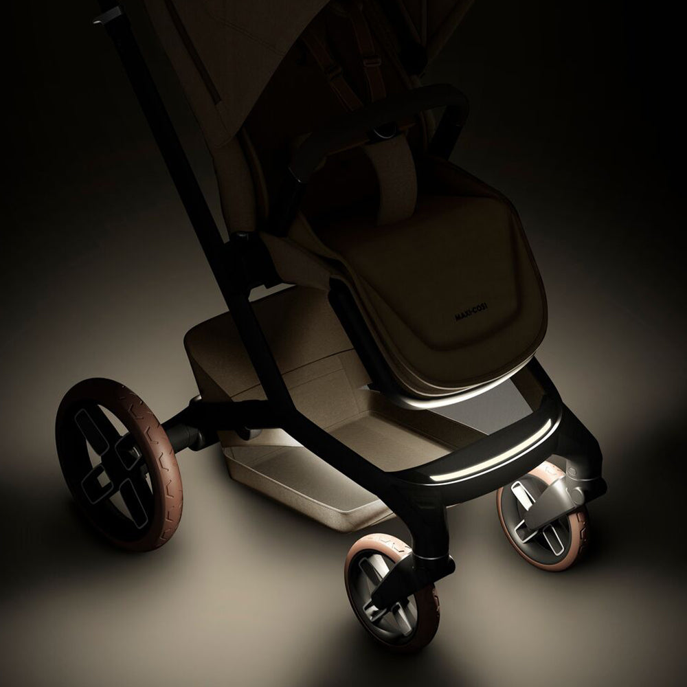 Fame’s innovative frame features iconic design details and premium finishes. Its integrated LumiRide system with LED lighting illuminates darker streets and dimly lit pathways, keeping you and baby safe & visible at all times. If your phone needs charging while you’re out, simply plug into the powerbank and you can power up on the go! The CosiCruise suspension offers super-smooth rides on every adventure. And when it’s time to store away, Fame’s compact and easy-fold mechanism allows the seat to fold in either direction, making life much easier for Mum or Dad.