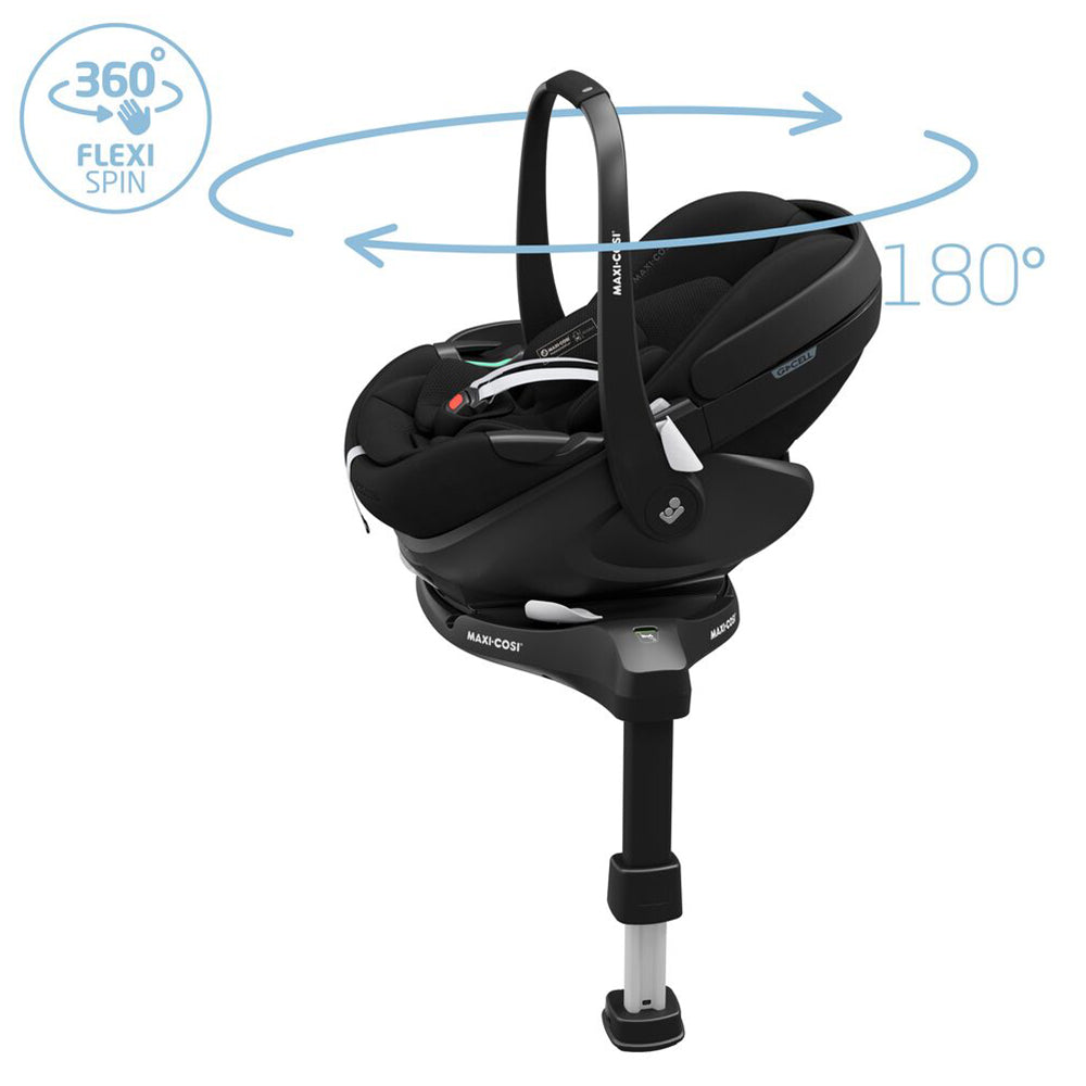 Quartz 360 features integrated G-CELL panels and a memory foam headrest that protect your child in the event of a side collision, as well as a secure 5-point safety harness. The 360° rotating FlexiSpin base ensures your little one can travel in the safest rearward-facing position up to 4 years old, and they can face forwards if you prefer from 15 months old