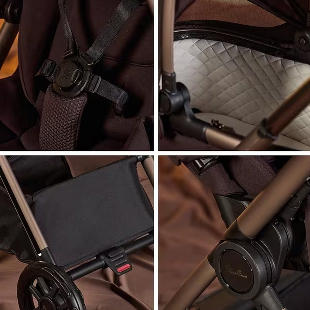 - Enhanced suspension, Genius™ harness system with magnetic buckle, one hand fold, and large 5kg storage basket for everyday convenience
