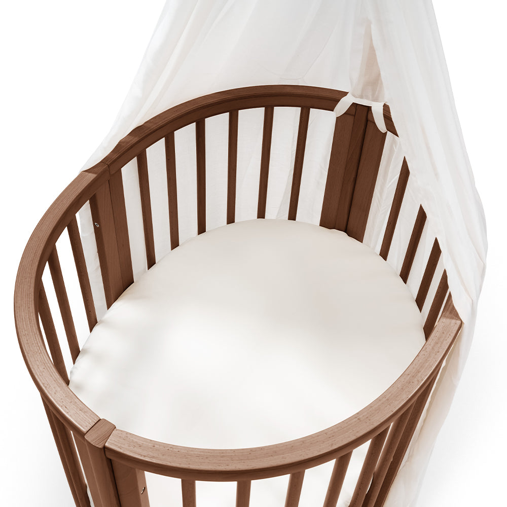 The canopy easily attaches to the Stokke® Sleepi™ Drape Rod, providing extra shade for peaceful daytime naps while adding an elegant touch to your nursery.
