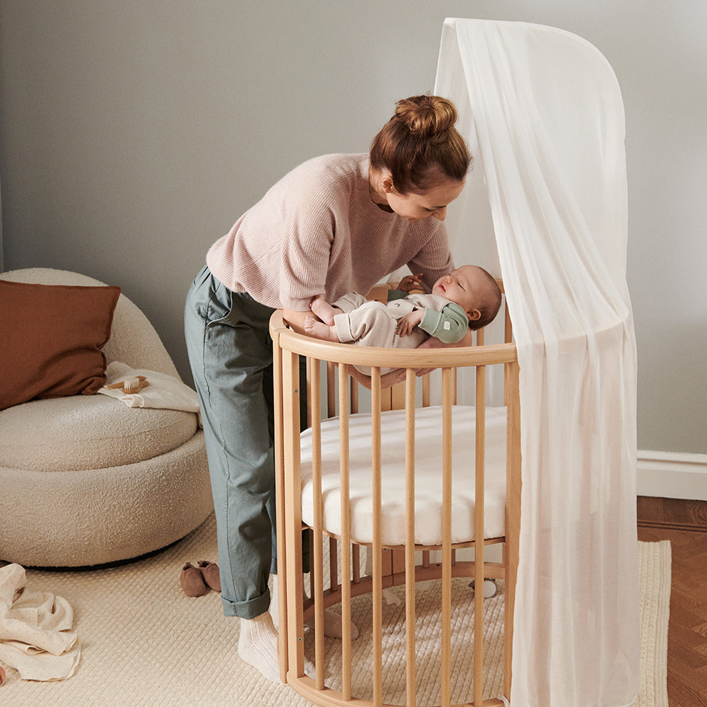 Surround your baby in serenity and style with the Stokke® Sleepi™ Canopy. Designed to create a cozy and calming environment, it helps promote restful sleep and sweet dreams.