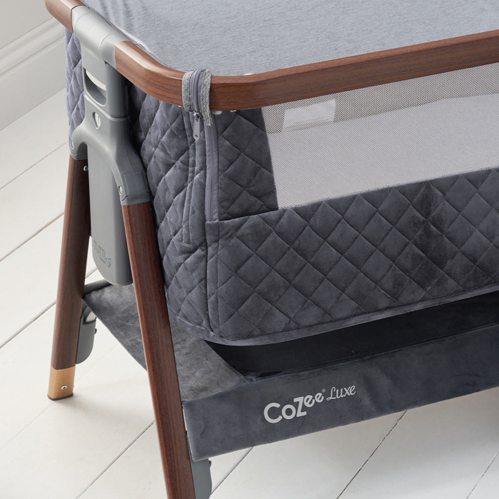 Deluxe Design - Upholstered in soft touch quilted velvet, this striking crib brings a touch of elegance and modern grandeur to your bedroom, whilst carrying all the award-winning features of the original CoZee.