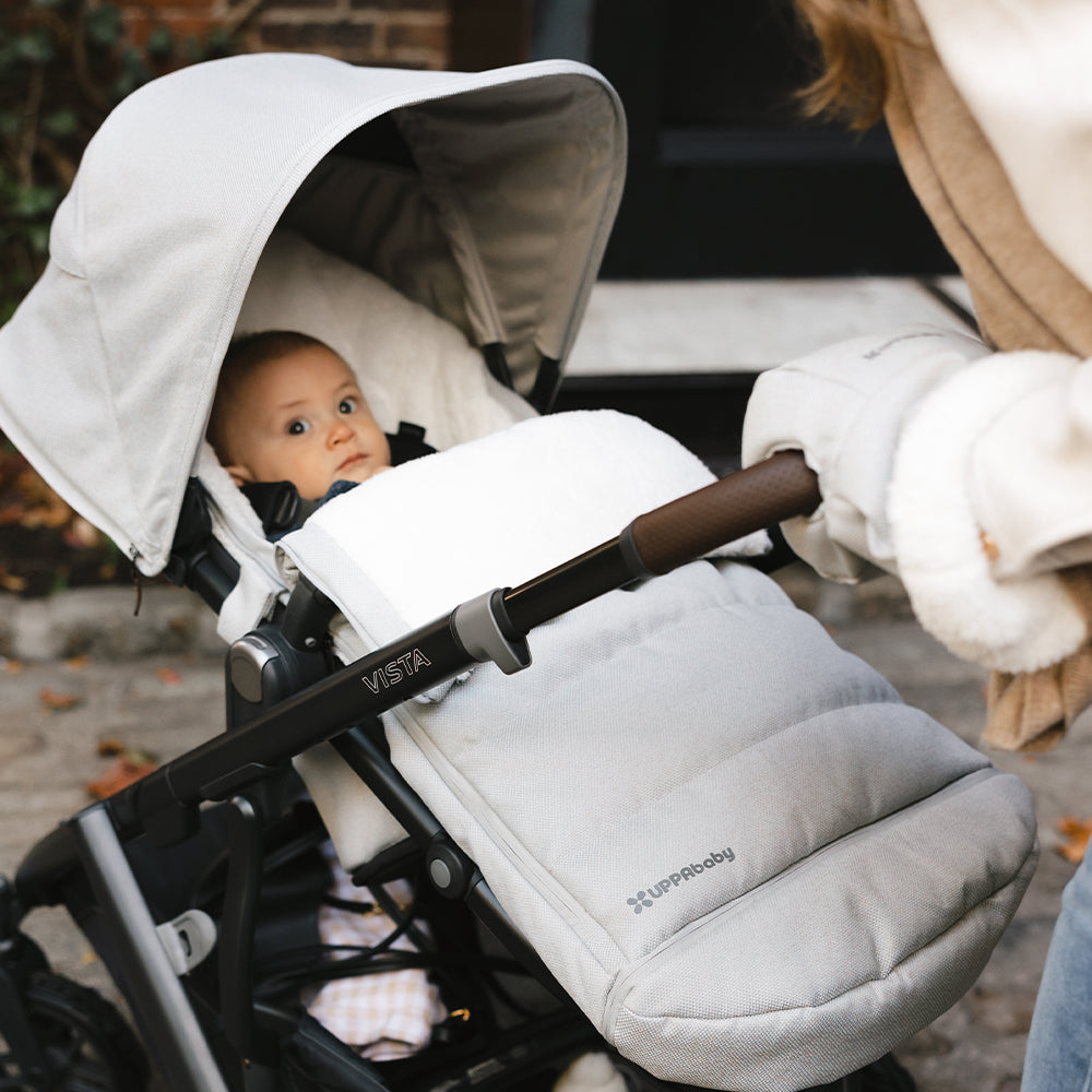 The UPPAbaby Winter Bundle for the Vista V3 includes four must-have accessories designed to keep both parent and baby comfortable during cold-weather strolls.