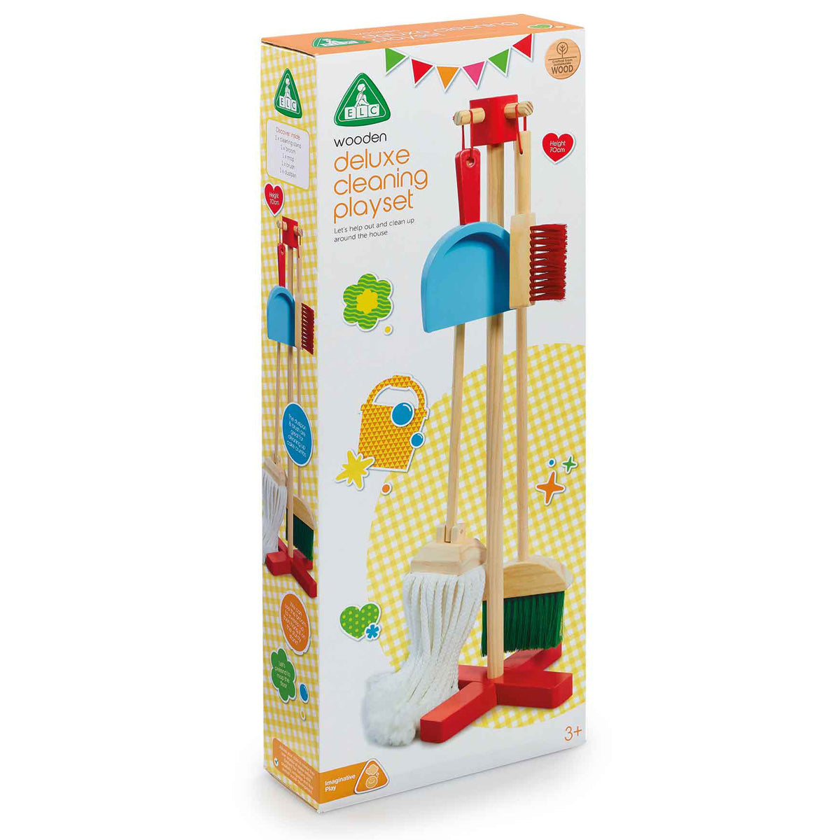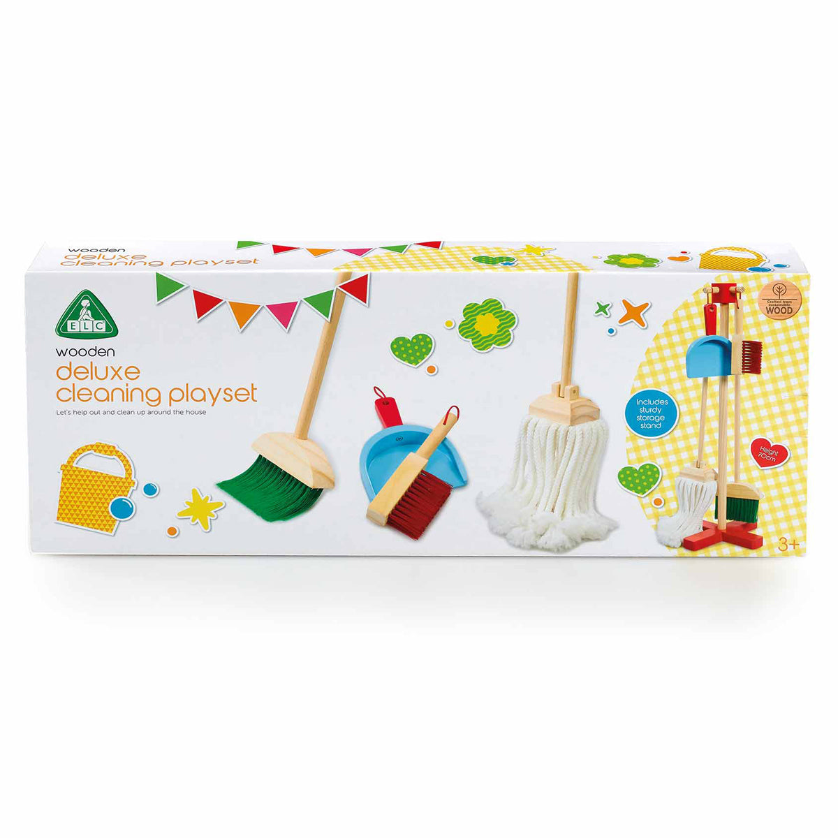 Children can help clean up around the house with the Early Learning Centre Wooden Deluxe Cleaning Play set.